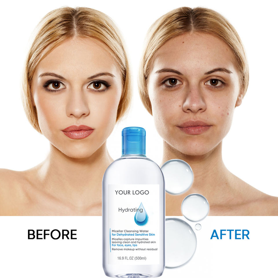 Personnalisé bio quotidien sans rinçage Deel hydratant apaisant hydratant nettoyage du visage eau micellaire démaquillant pour peau sèche