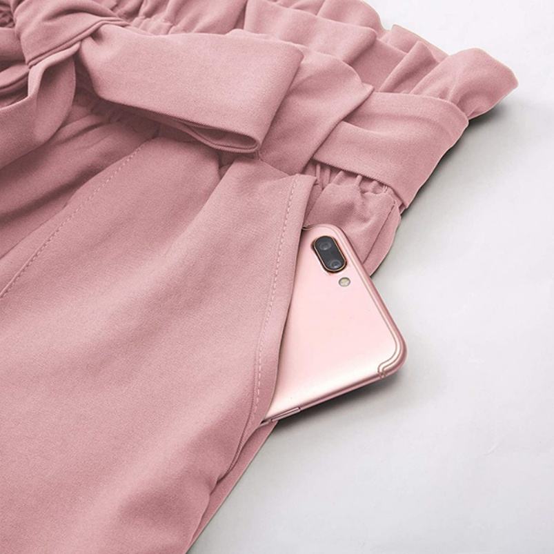 Tissu biologique personnalisé mode excellente qualité été femmes nœud ceinture volants taille ligne Shorts décontracté