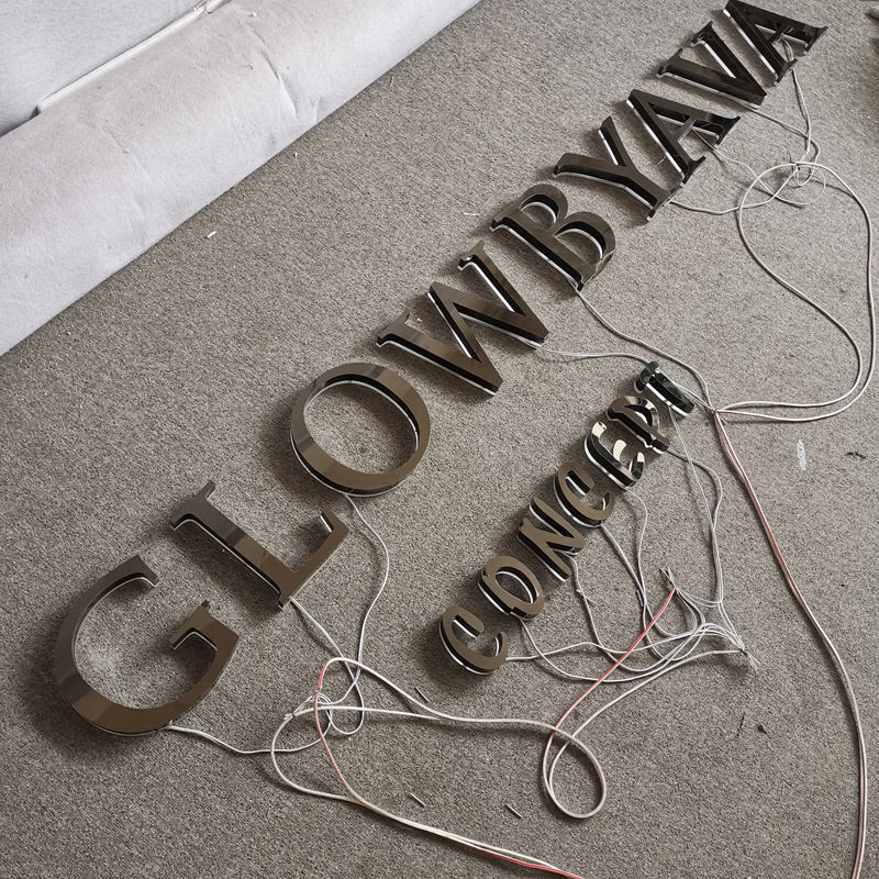 Enseignes rétroéclairées d'extérieur personnalisées avec logo mural en métal 3D Led Halo Enseigne éclairée par des lettres Led avec éclairage latéral Lettre de canal