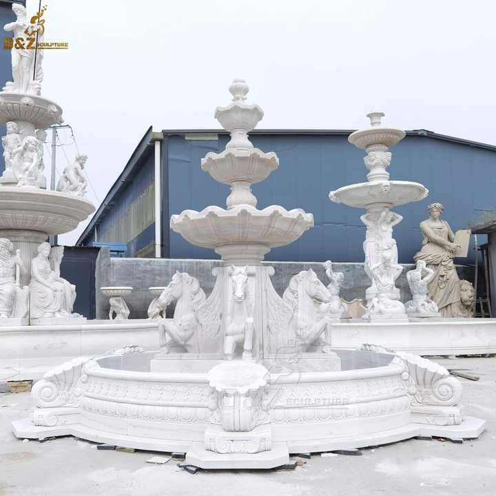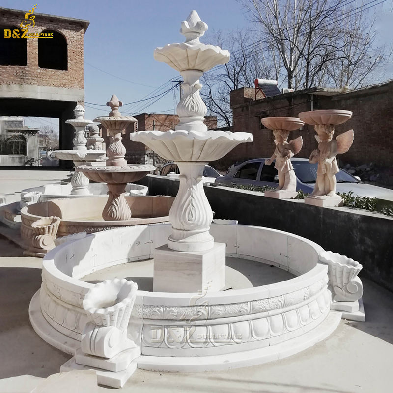Jardin extérieur personnalisé déco publique grande piscine en marbre blanc sculpté naturel fontaine d'eau en marbre à 3 niveaux
