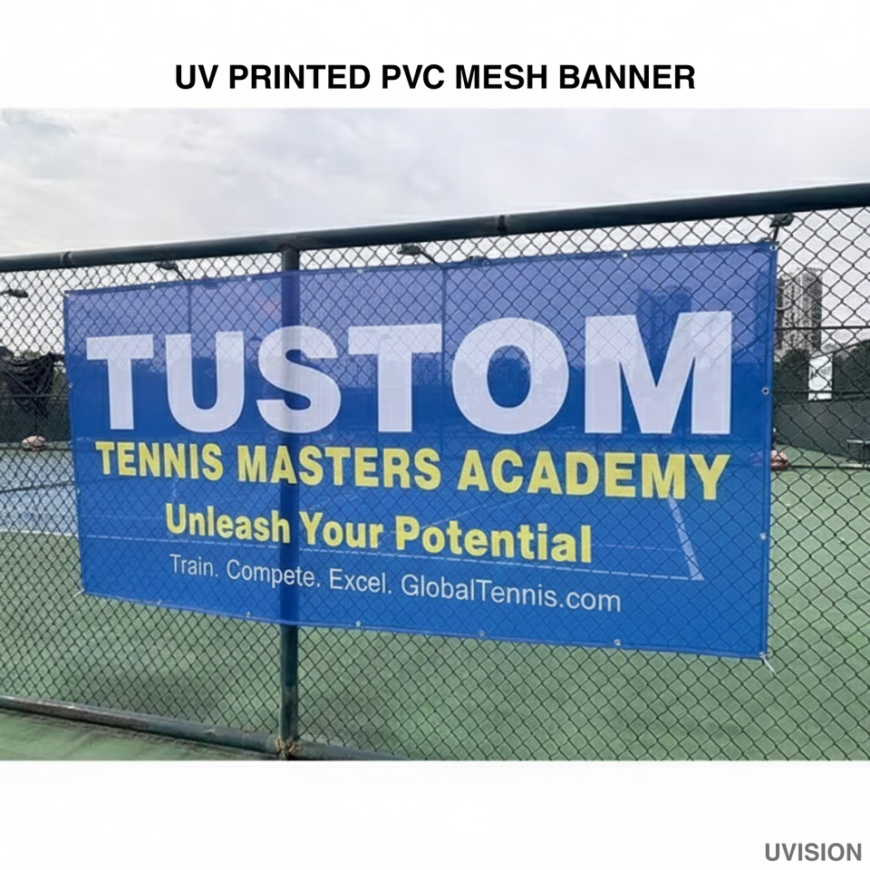 Bannière publicitaire extérieure personnalisée en maille, imprimée UV, résistante au vent, pour clôture