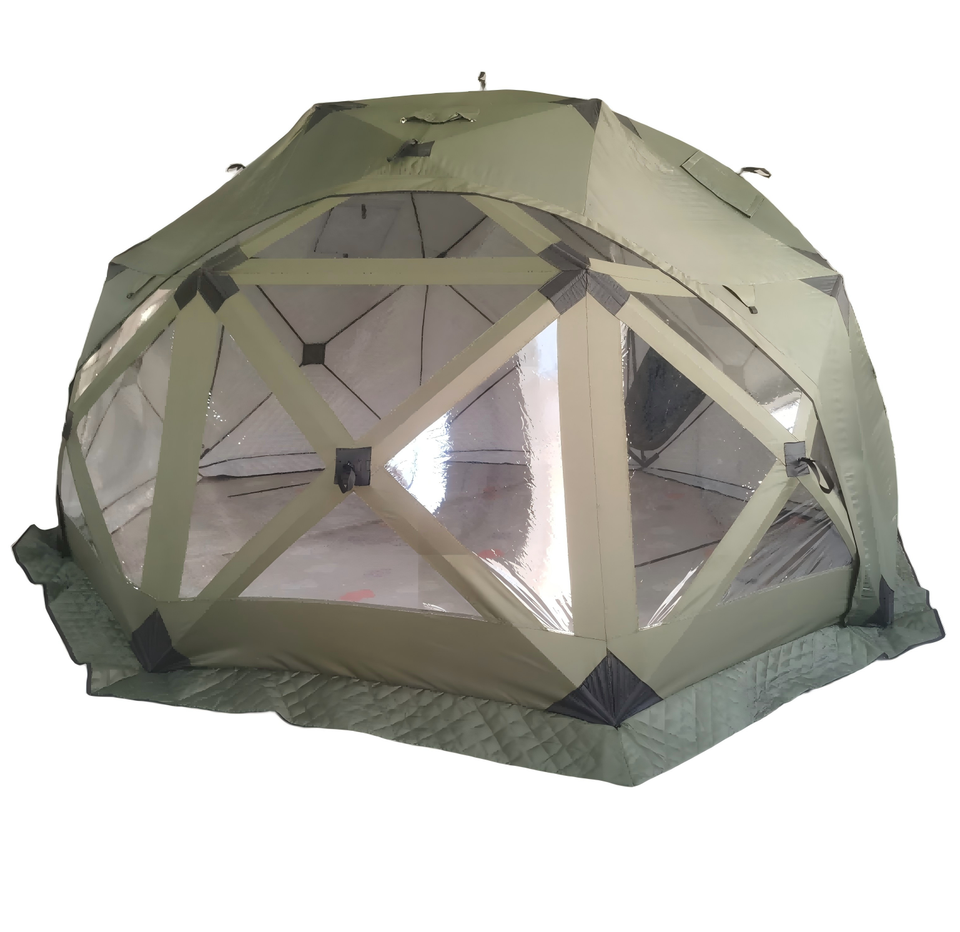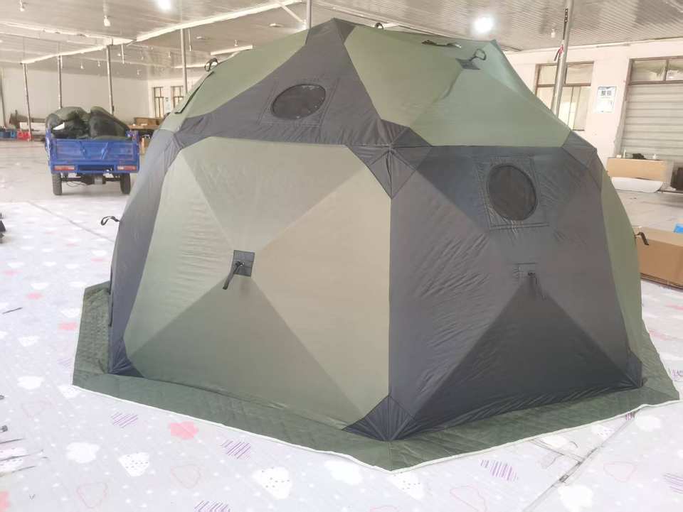 Tente octogonale d'hiver d'extérieur personnalisée avec isolation, grande fenêtre et trou pour cheminée pour la pêche