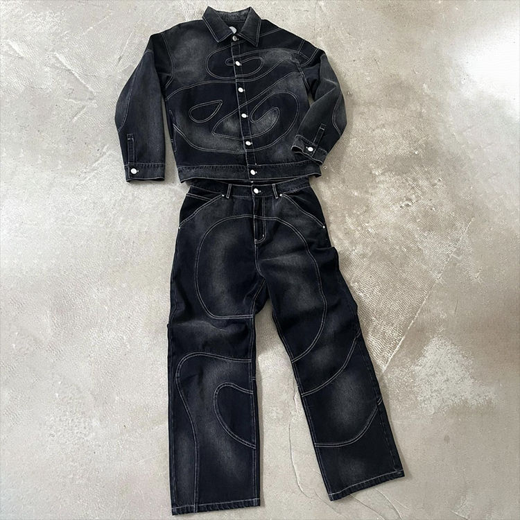 Tenues personnalisées Ensembles veste en jean Vêtements personnalisés pour homme Vêtements de rue Ensembles pantalon en jean de haute qualité Panneau Denim de travail pour hommes