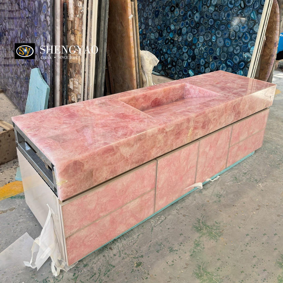 Îlot de cuisine naturel rose cristal Quartz Rose dalle de comptoir en pierre