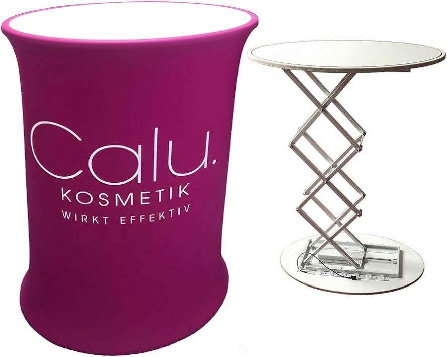 Comptoir pliable personnalisé de forme ovale pour salon professionnel, table de stand pliable avec éclairage LED