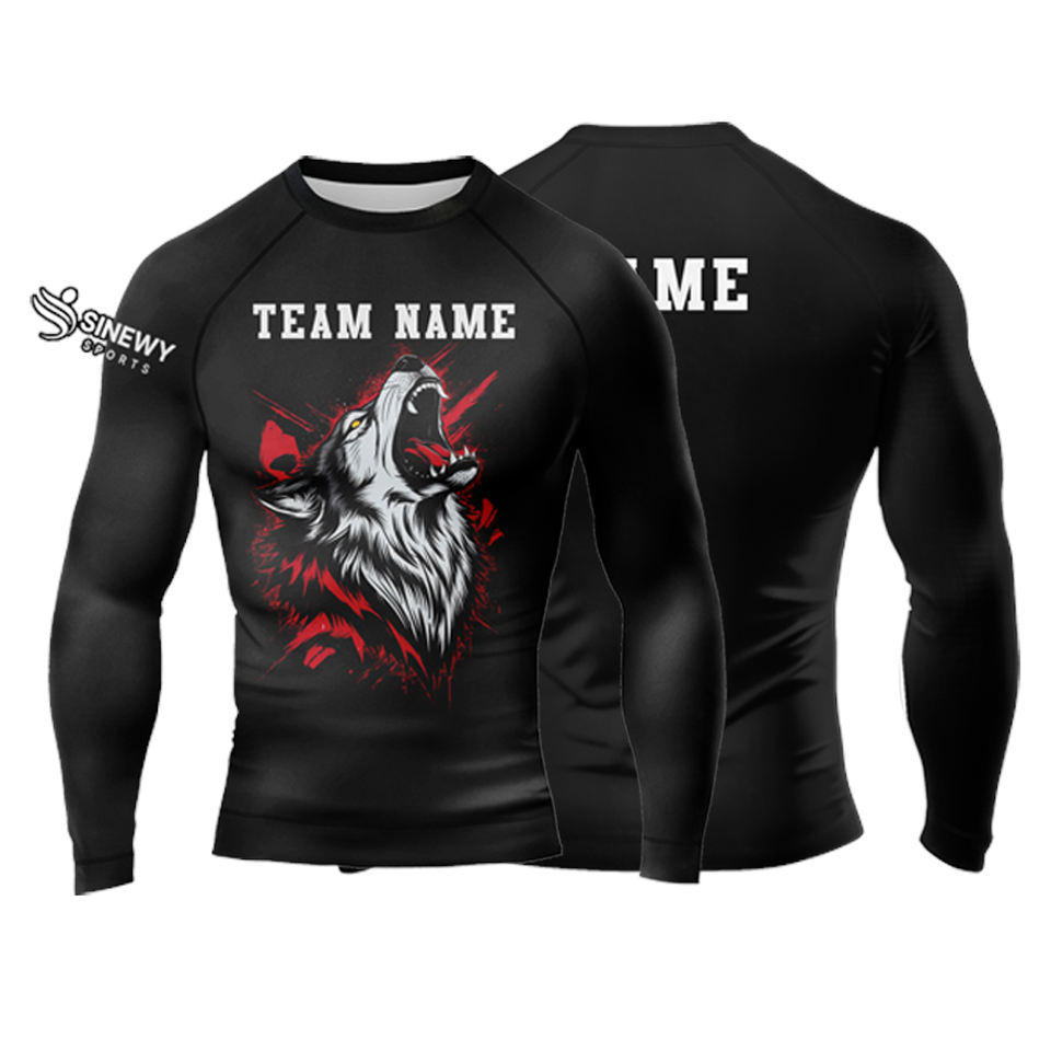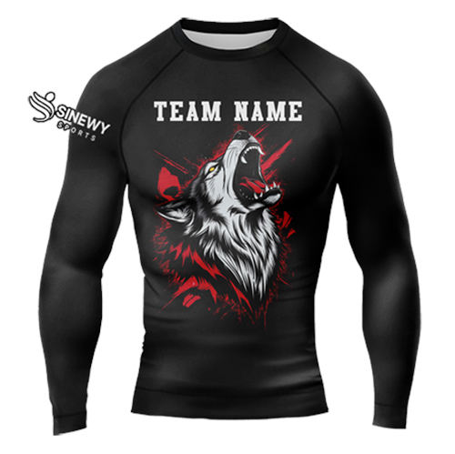 Rashguard MMA personnalisé uni à manches longues respirant unisexe en Spandex/Polyester pour la vente en gros – Créez votre propre rashguard noir