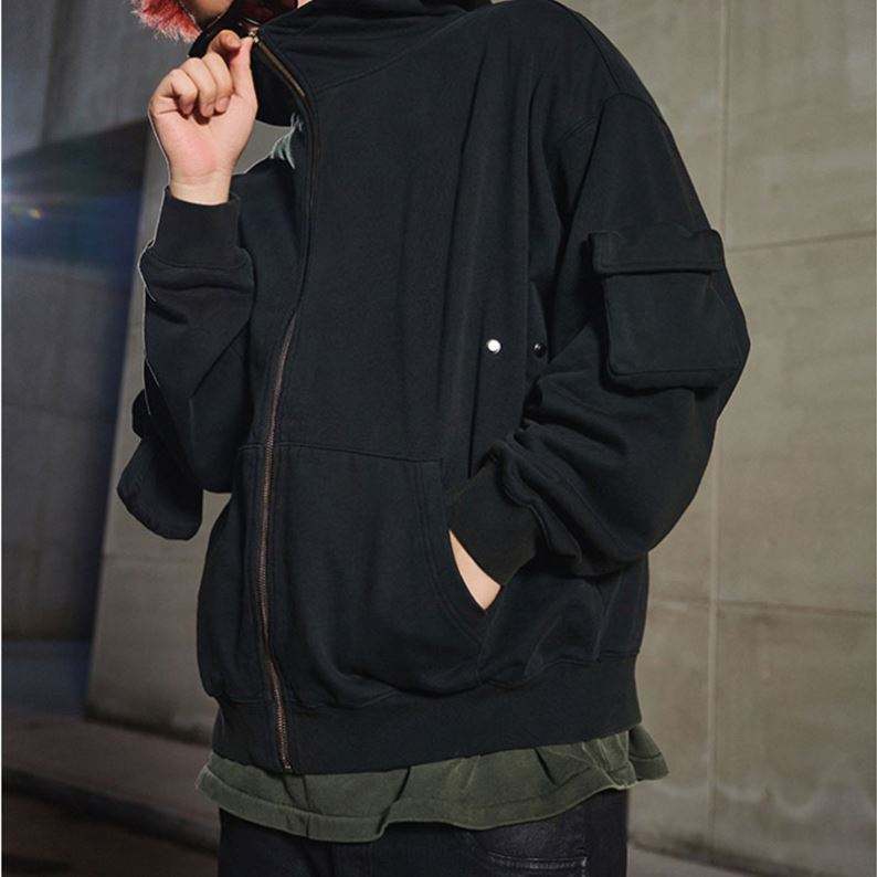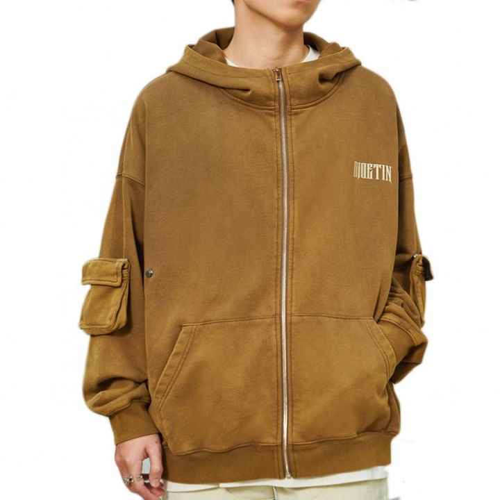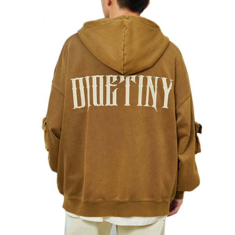 Sweat-shirt à capuche zippé personnalisé surdimensionné 450g/m2 pour hommes 100% coton brodé avec poche teinte unie pour l'automne
