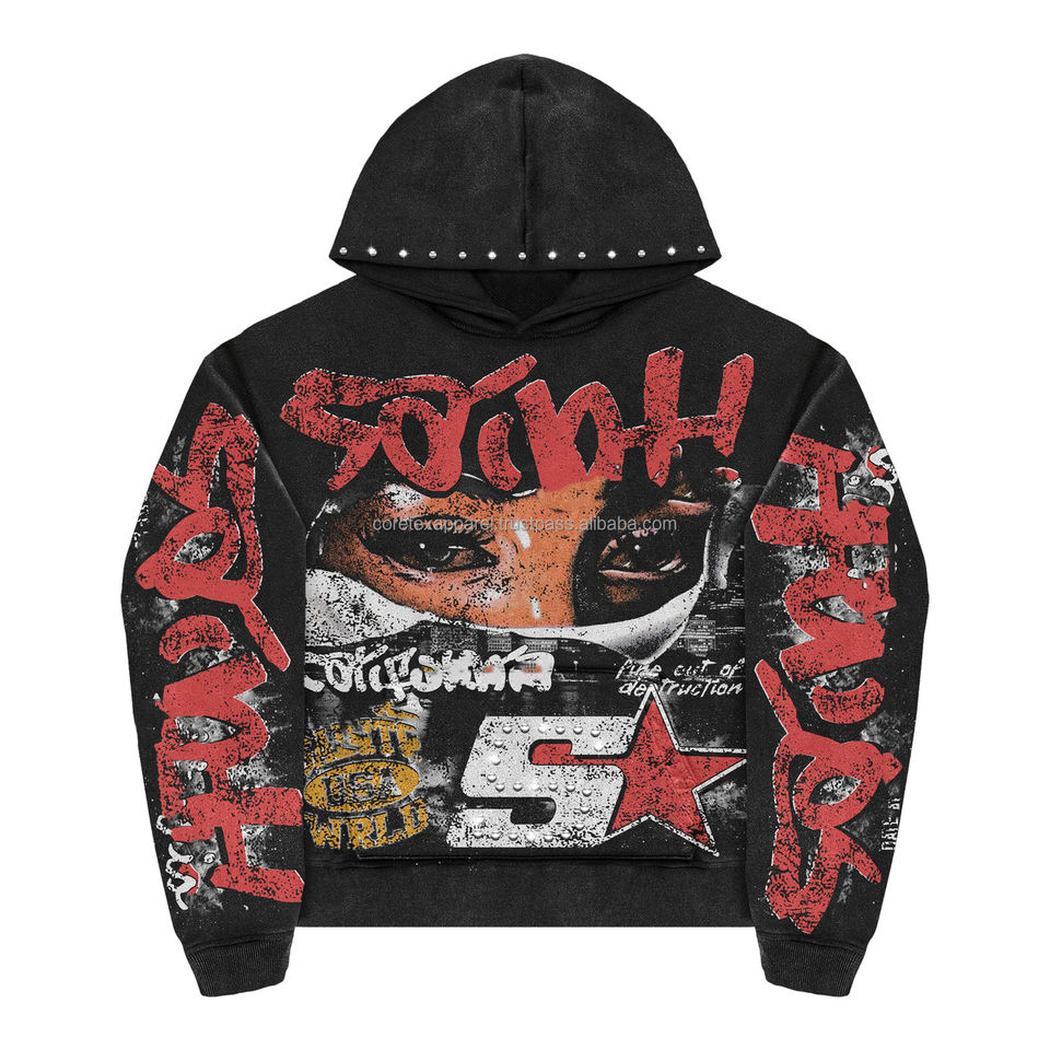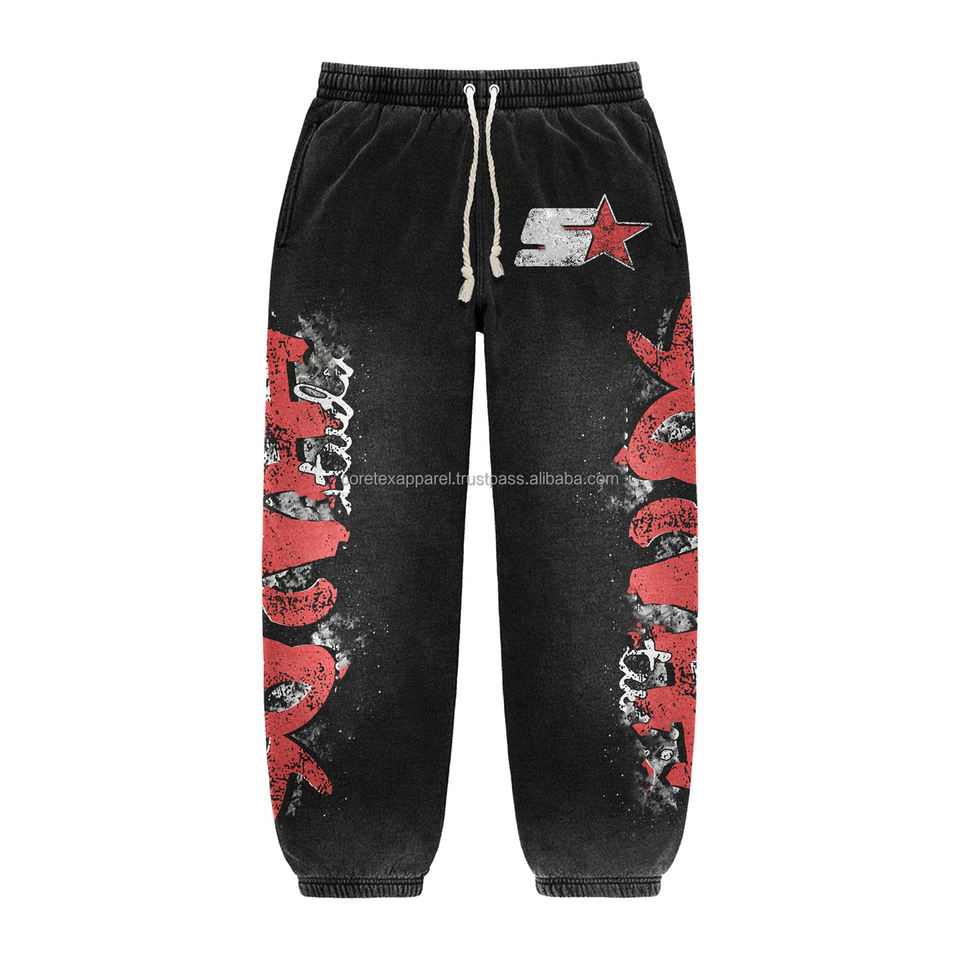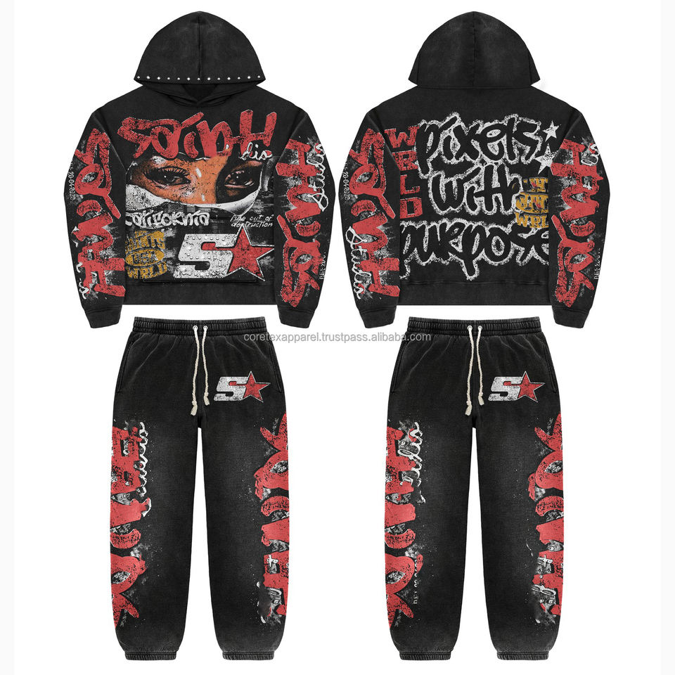 Ensemble survêtement pour homme avec broderie personnalisée surdimensionnée délavée à l'acide et usée, pantalon évasé vintage respirant pour l'automne