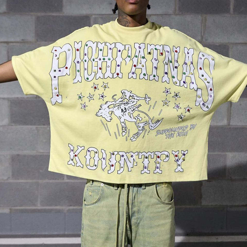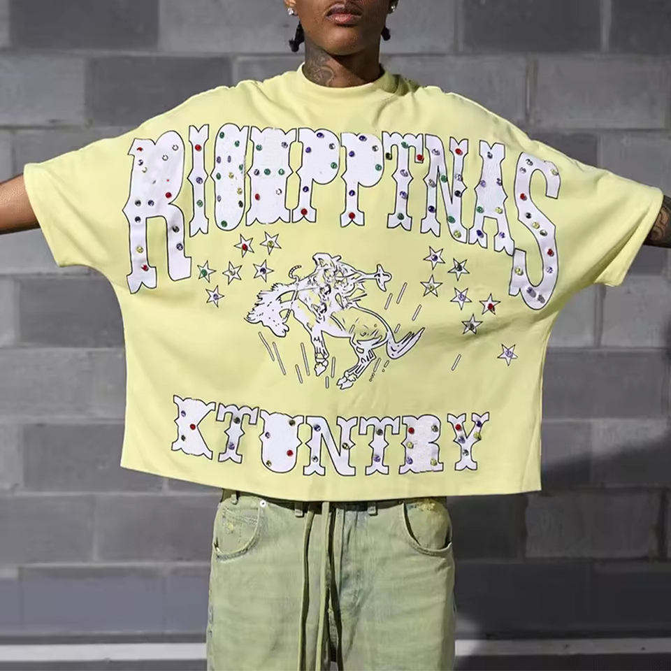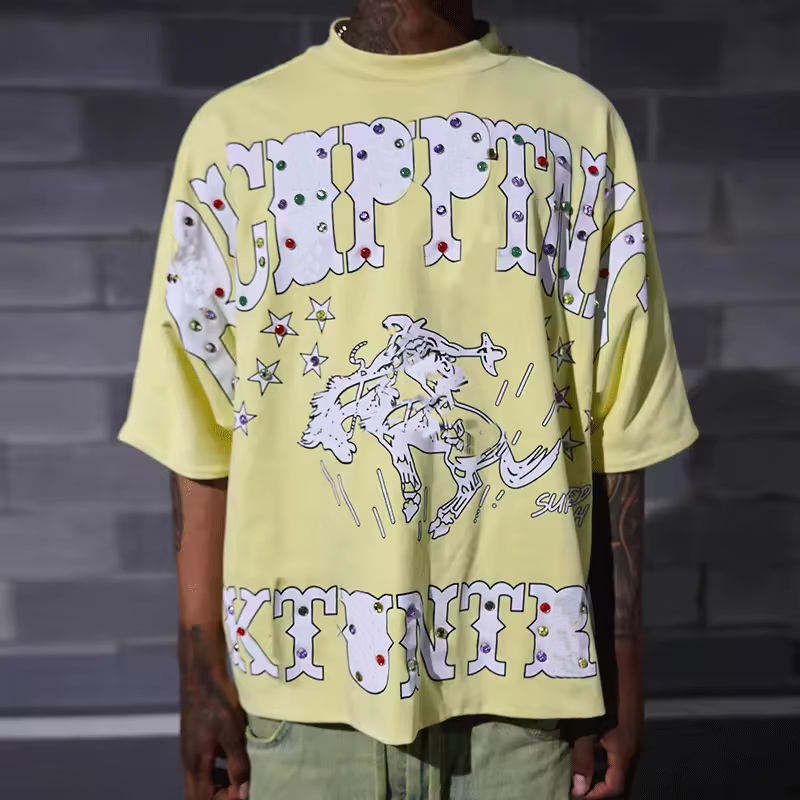 T-shirts Homme Personnalisés Coupe Slim Courte Vintage Boxy Délavé à l'Acide Respirant 100% Coton Strass Grammage Lourd 300g