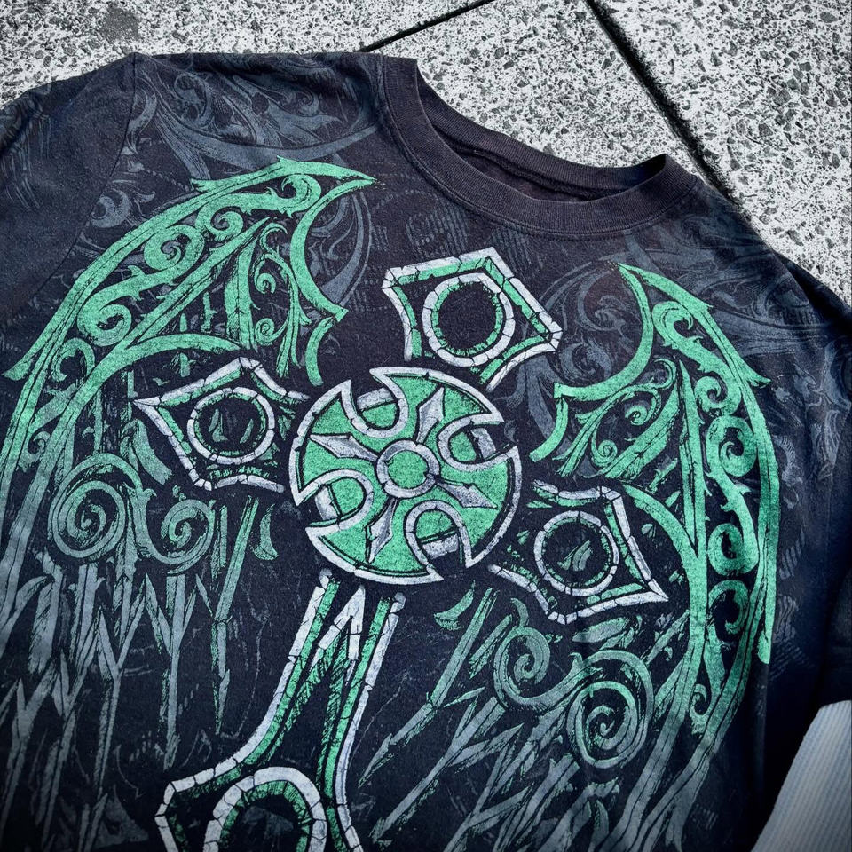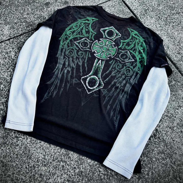 T-shirt vintage surdimensionné personnalisé avec impression DTG, coton 100%, unisexe, délavage acide, patchwork, gaufré, double couche, manches longues