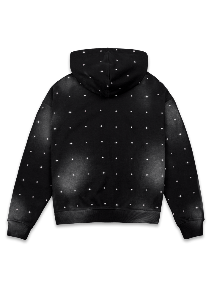 Sweat à capuche noir en molleton de coton 100% surdimensionné personnalisé Streetwear vintage pour hommes pull de haute qualité avec décoloration au soleil taille XL avec strass
