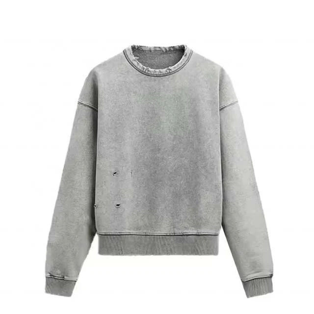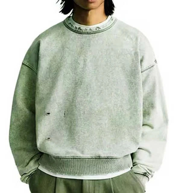 Sweat-shirts à col rond pour hommes, surdimensionnés, 100% coton, nouvelle mode personnalisée, 380 GSM, délavés à l'acide, usés, basiques, en provenance du Pakistan