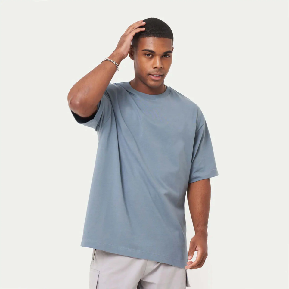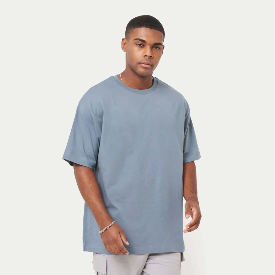 T-shirt bleu surdimensionné personnalisé pour homme, coton lourd, coupe ample, épaules tombantes, streetwear, décontracté, uni