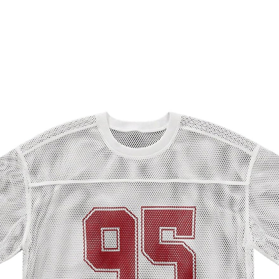 Maillot de football personnalisé coupe oversize et ample en mesh, style streetwear, imprimé, t-shirt court respirant pour le football