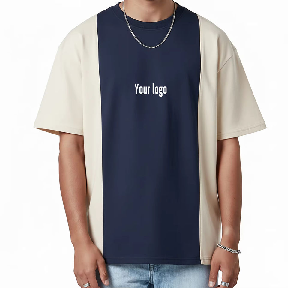 T-shirt Homme Oversize Personnalisé à Blocs de Couleurs, Panneaux Contrastants, Streetwear, Coton, Manches Courtes, Décontracté, Mode, T-shirt Vierge, Col Rond