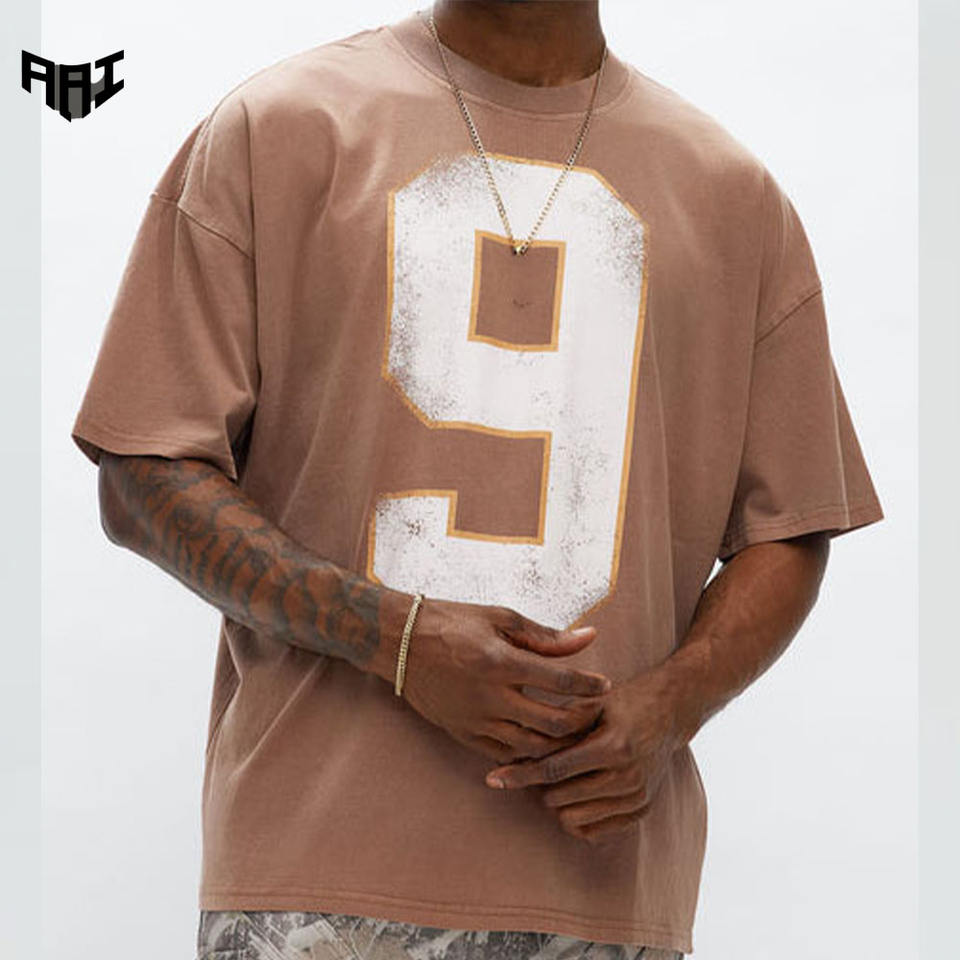 T-shirt Homme Oversize Personnalisé Style Vintage avec Numéro Imprimé, Coton Lourd 240g et Motif Vieilli, Haut Style Jersey, Vente en Gros OEM