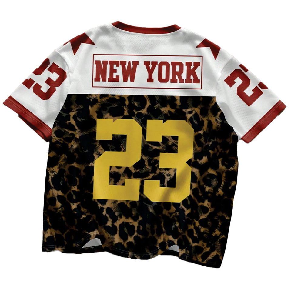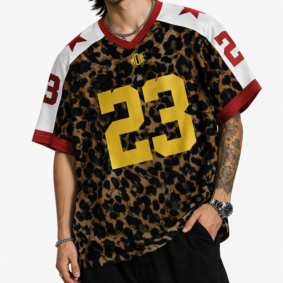 Maillot de football américain surdimensionné personnalisé en maille, motif léopard, respirant, en polyester, streetwear, t-shirt de sport, service OEM personnalisé