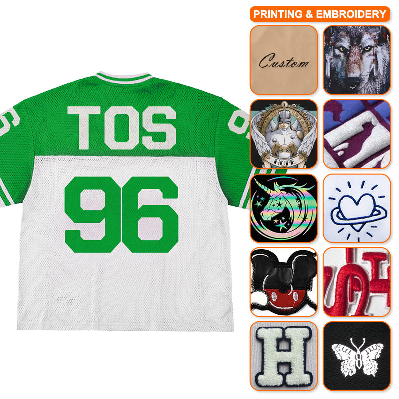 T-shirt de football américain en maille surdimensionnée personnalisé chemise de maillot de football court sublimé