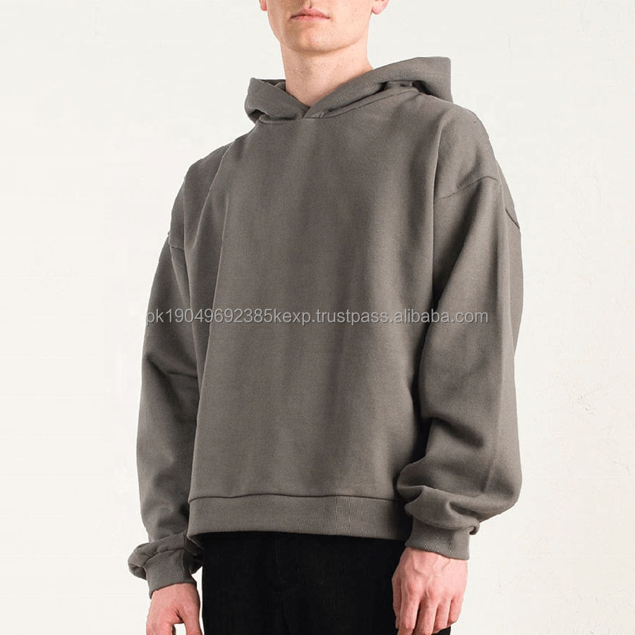 Sweat-shirt surdimensionné personnalisé à ourlet brut 450 Gsm sans cordon en coton épais Sweat-shirt personnalisé à coupe courte pour homme