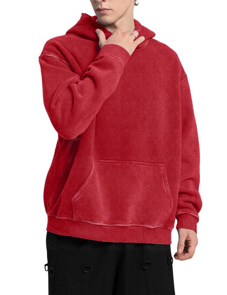 Sweats à capuche surdimensionnés personnalisés de couleur unie grande taille pour hommes capuche réglable détails côtelés mode avant Streetwear sweats à capuche unisexe