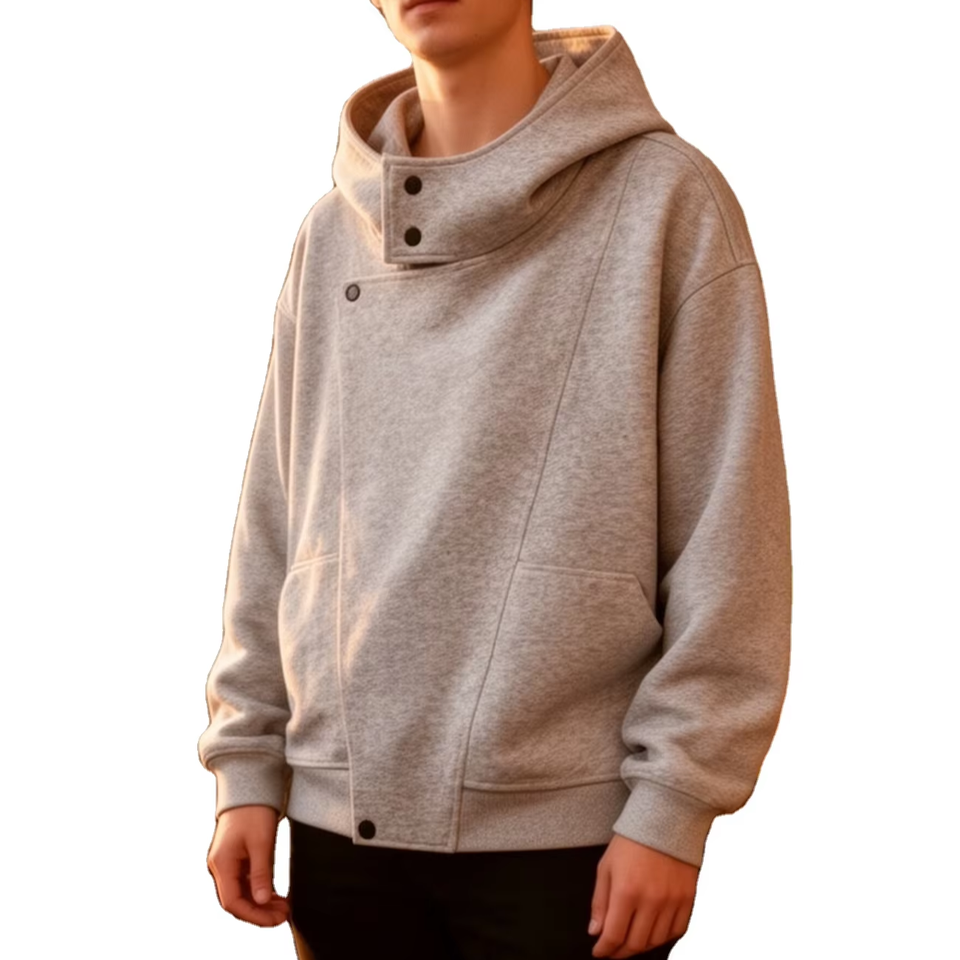 Sweat-shirt en molleton de coton asymétrique à capuche pour homme, coupe-vent, écologique, sans doublure, boutonné, collection automne/hiver, tricot personnalisé
