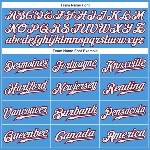 Maillot de baseball personnalisé authentique bleu poudré, blanc et rouge, brodé, uniforme sportif d'équipe personnalisé, polyester respirant