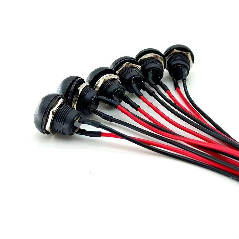 Câble personnalisé étanche et anti-poussière de 12 mm avec interrupteur à bouton vers connecteur femelle JST XH2.54 2 broches, gaine en cuivre pur TPE/Nylon pour voiture et moto