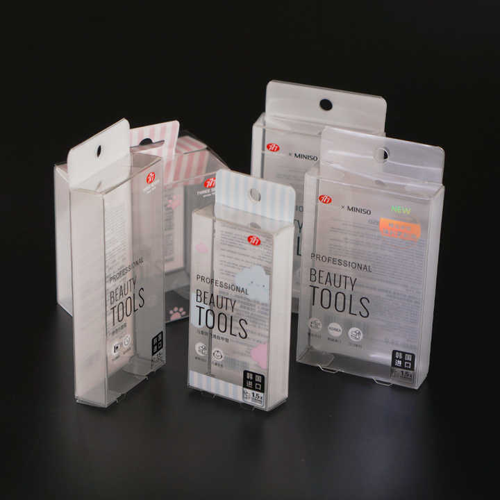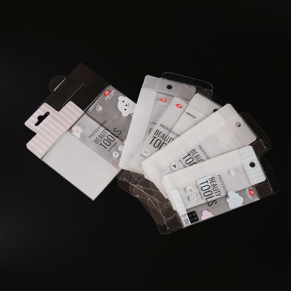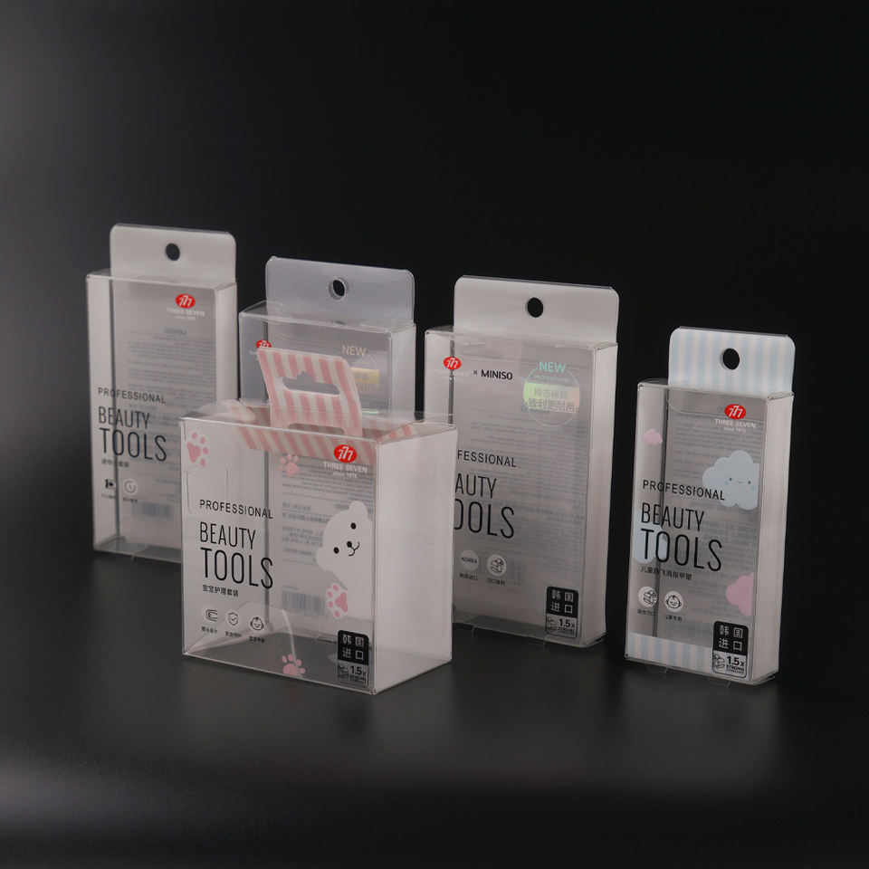 Boîte de rangement pliable en plastique PET PVC personnalisée, boîte d'emballage pour outils de beauté pour bébé, avec trou de suspension