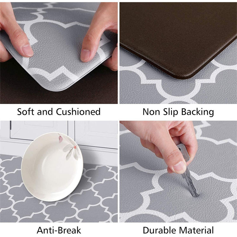 Tapis anti-fatigue personnalisé en PVC simili cuir, noyau en mousse SBR, antidérapant, imperméable, tapis de sol rembourré tissé pour cuisine et atelier