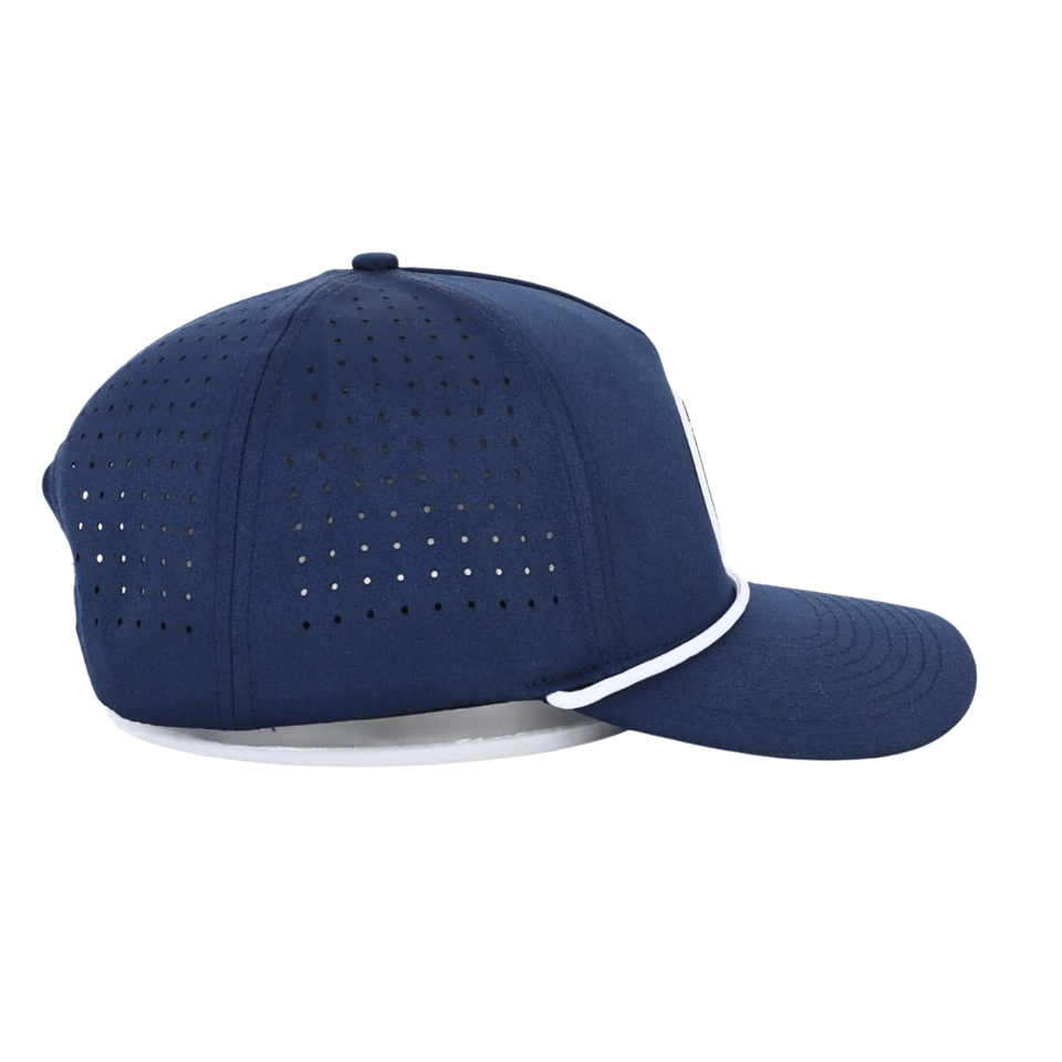 Casquettes de baseball 5 panneaux personnalisées avec logo en PVC, chapeau de golf perforé avec cordon pour homme et femme, fabriqué au Vietnam.