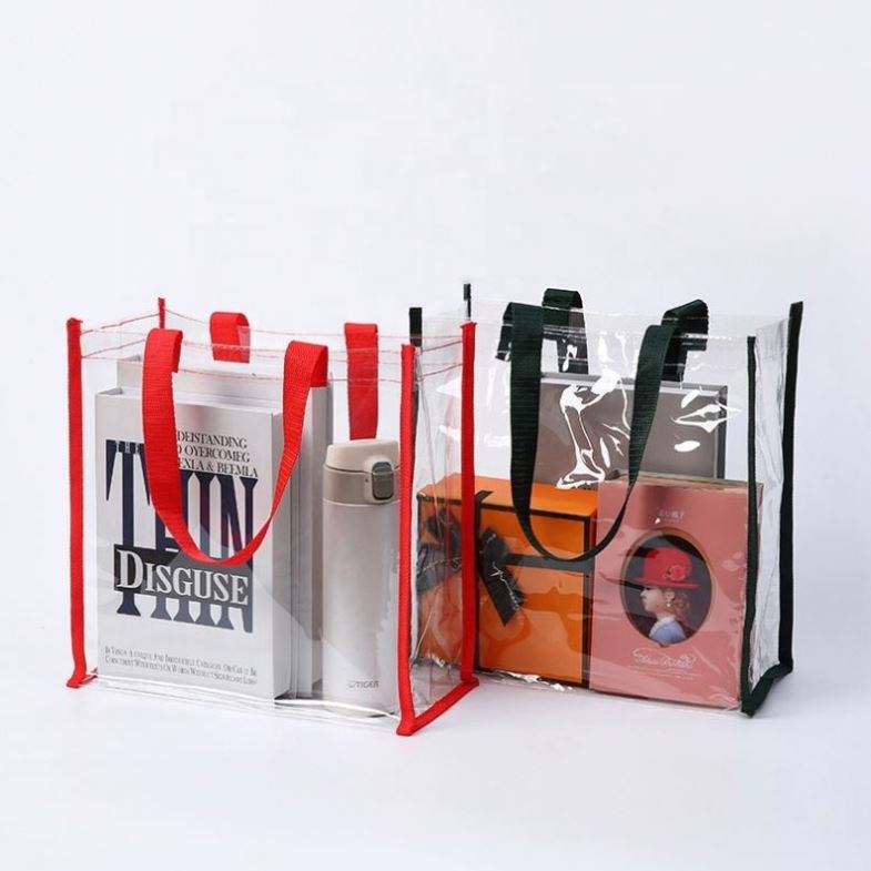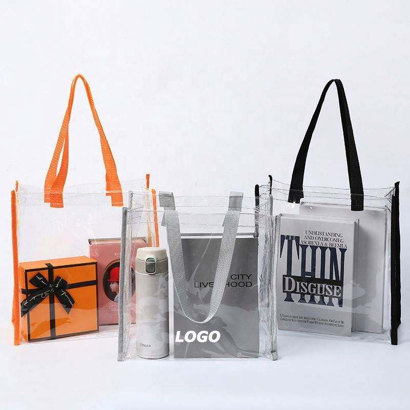Sacs fourre-tout personnalisés en PVC - Sacs de courses en plastique transparent avec poignées cousues durables pour cadeaux promotionnels