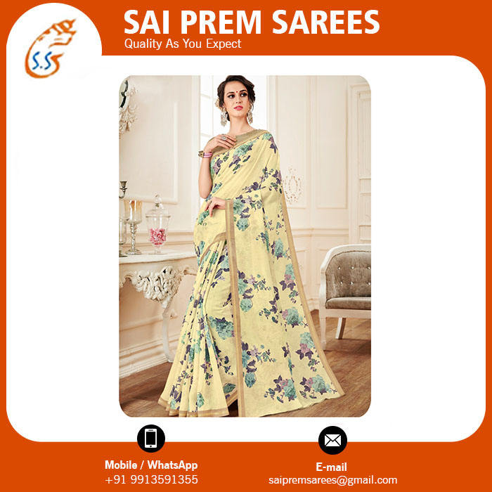 Numéro de Type:Floral Linen Soft Cotton Saree