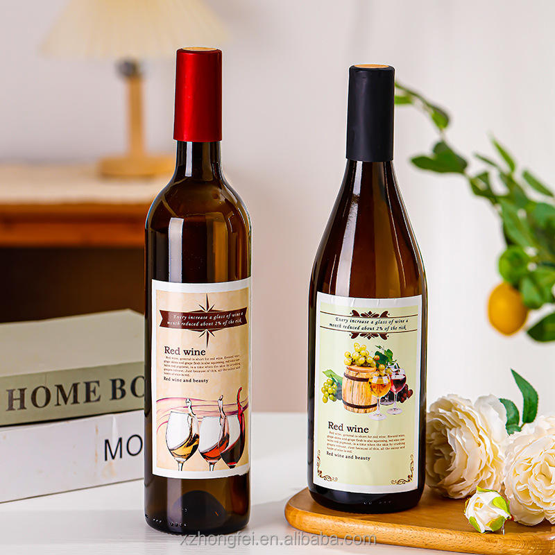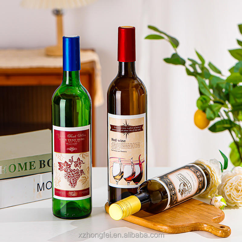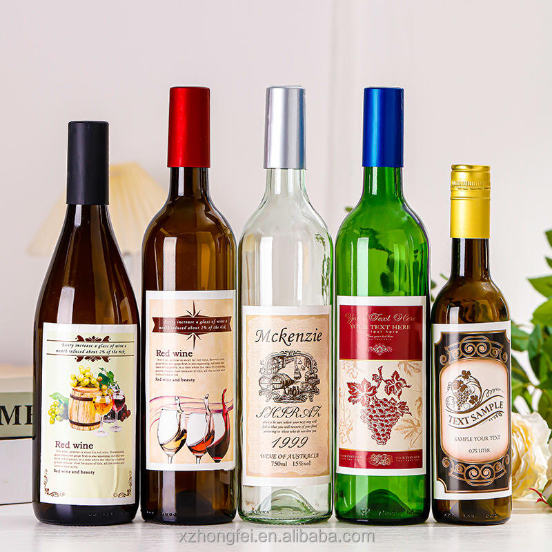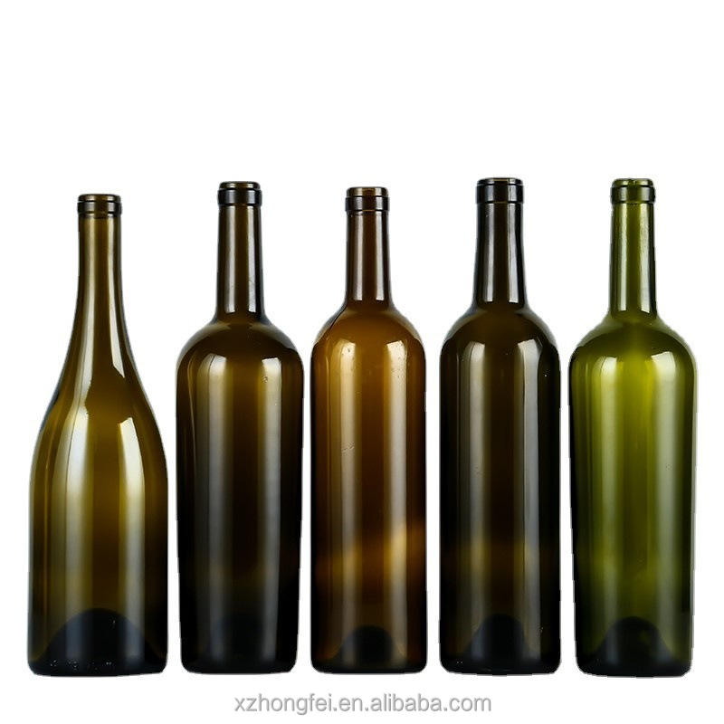 Étiquette en papier personnalisée bon marché 750ml bouteilles en verre de vin forme ronde légère de vin rouge vert olive avec bouchons en liège naturels