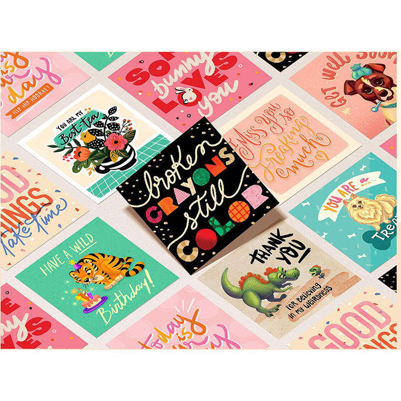 Carte de vœux haut de gamme personnalisée en papier avec impression, lettrage en relief, pages pliées et estampage à chaud argent ou or