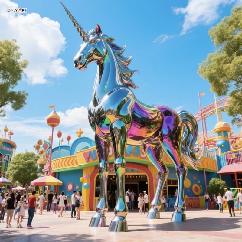 Nom du produit:Sculpture de licorne couleur placage en acier inoxydable