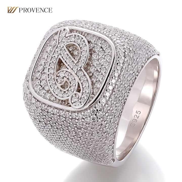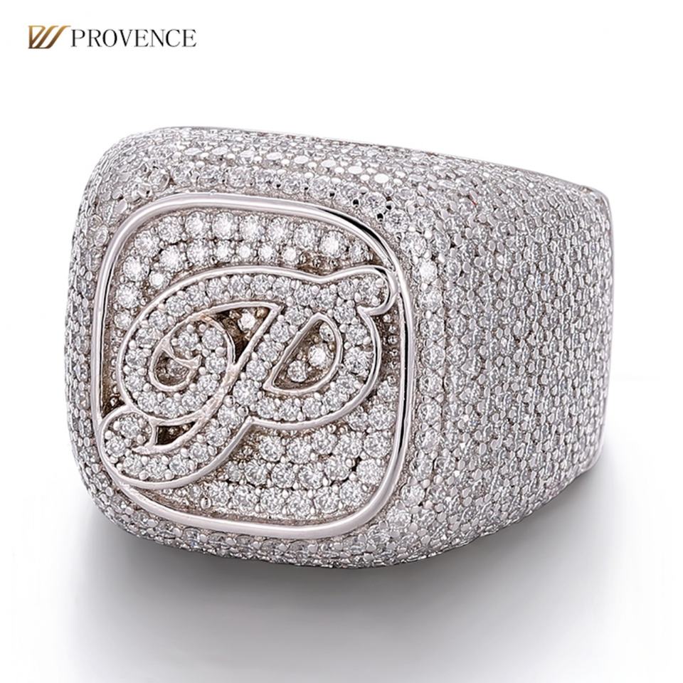 Bague en or blanc massif 18K 14K 10K avec diamants personnalisés, version large, sertie de moissanite DEF VVS, pour hommes
