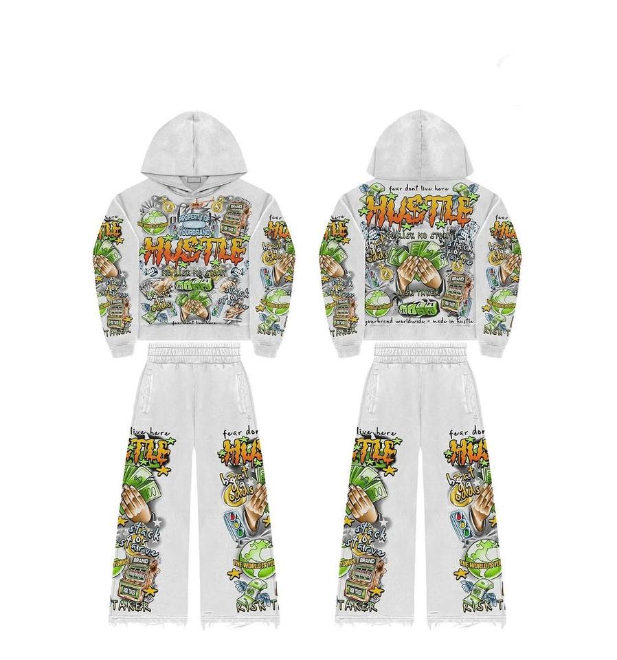 Sweat-shirt pour homme en coton 100% 500 g/m², tricoté pour l'hiver, style streetwear, respirant, avec logo brodé personnalisé, patchs en strass et effet vieilli