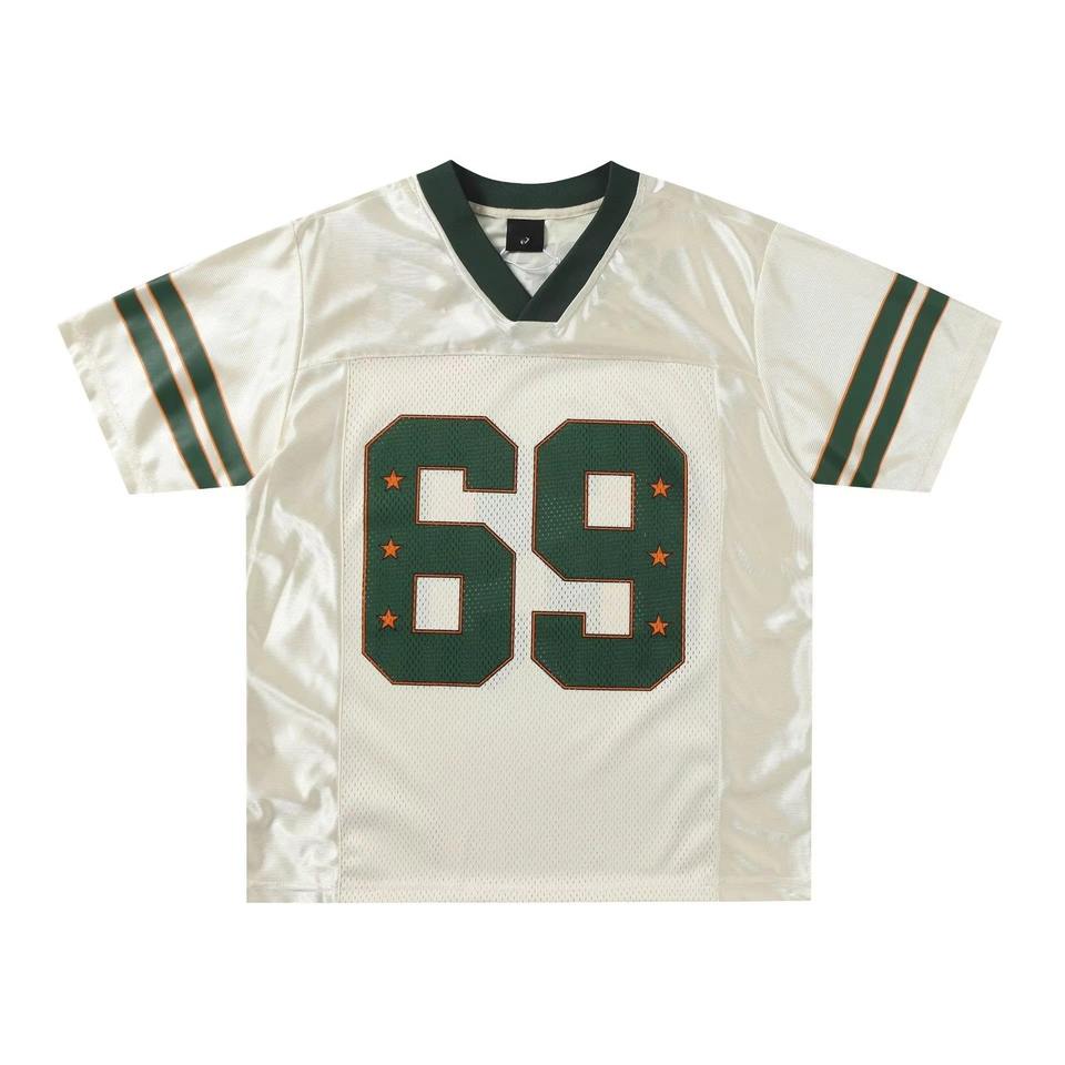 T-shirt de sport vintage oversize personnalisé en patchwork, coupe américaine, en maille, style streetwear, maillot de football 100% coton