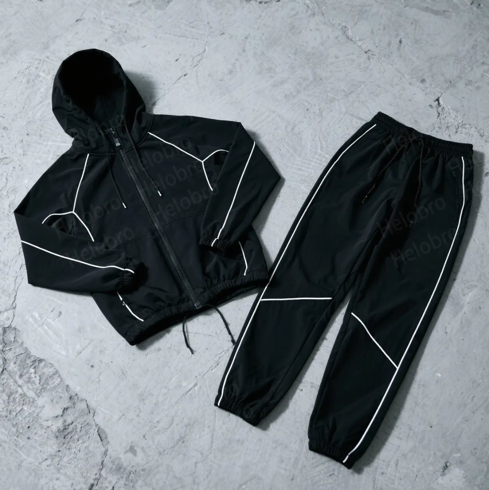 Survêtement en nylon léger patchwork personnalisé veste à rayures réfléchissantes et fermeture éclair Survêtement homme coupe-vent au design tendance