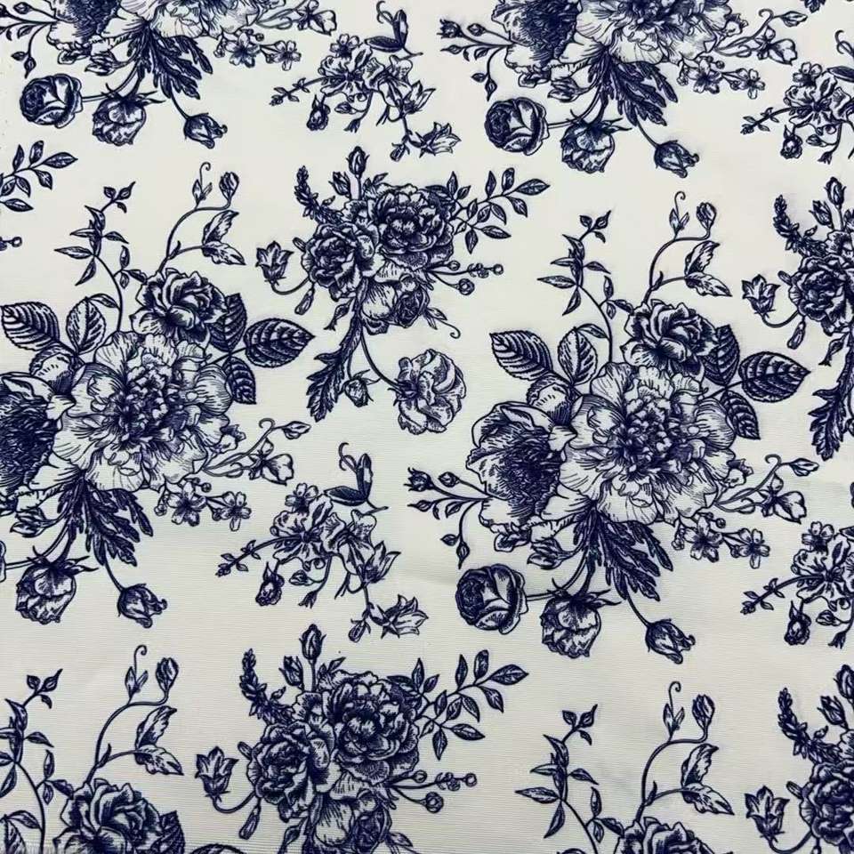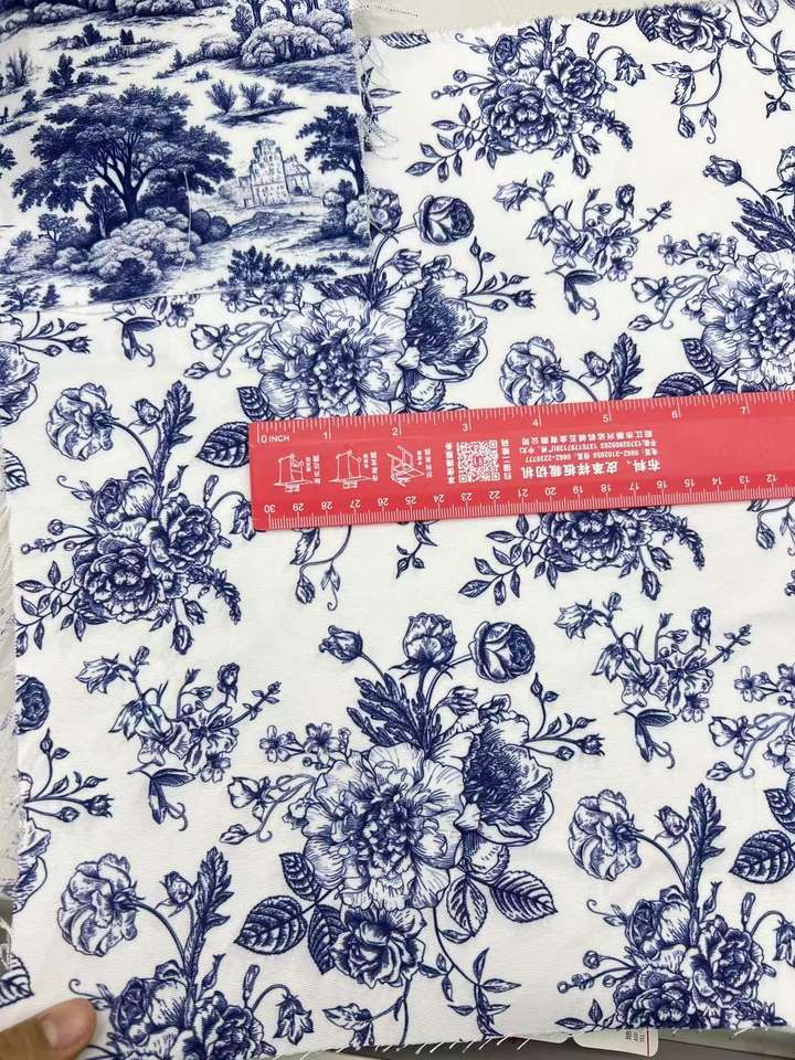 Tissu toile de Jouy imprimé sur mesure à motif floral bleu, imprimé léopard jungle, pour robes, textiles de maison et ameublement