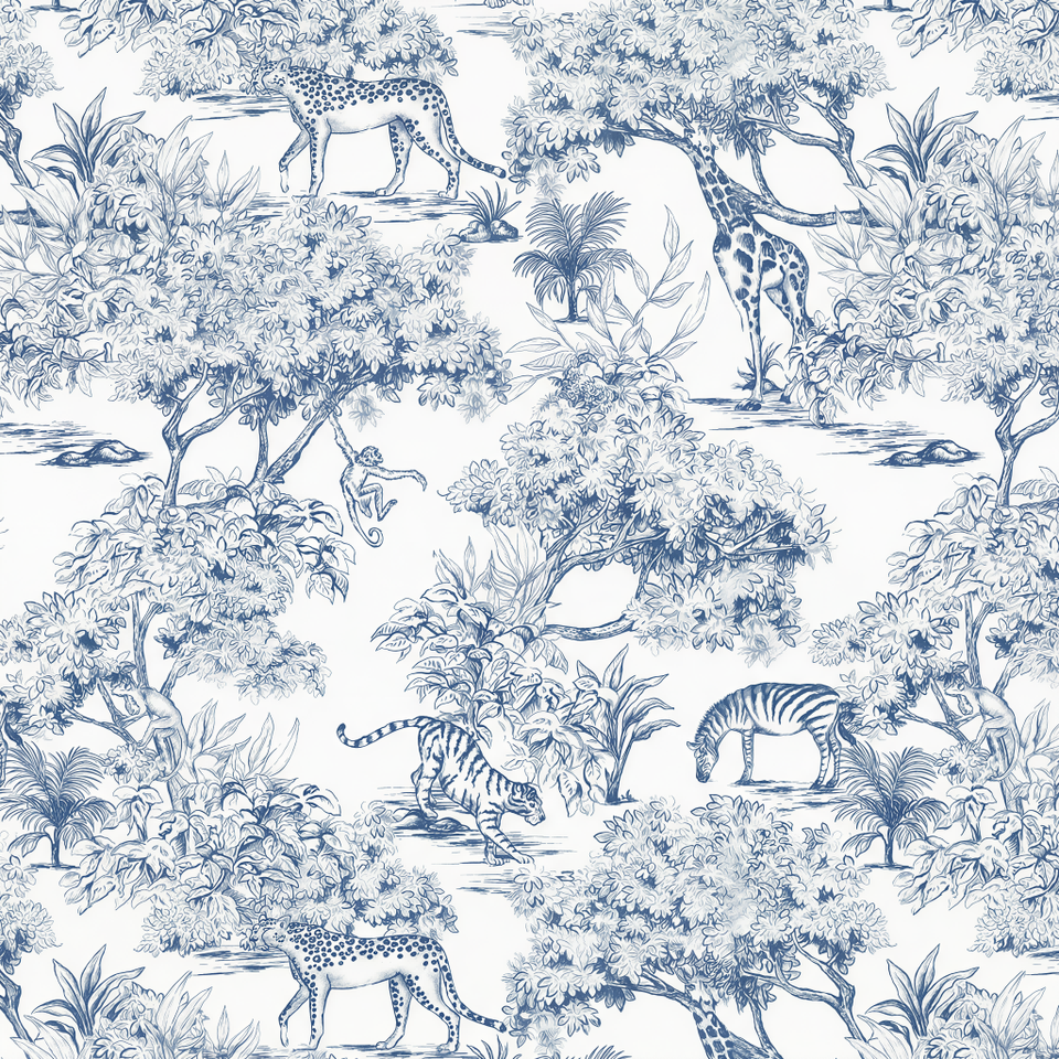 Tissu imprimé toile de Jouy à motif personnalisé bleu jungle léopard, tissu tissé, toile imperméable, textile d'ameublement, décoration intérieure