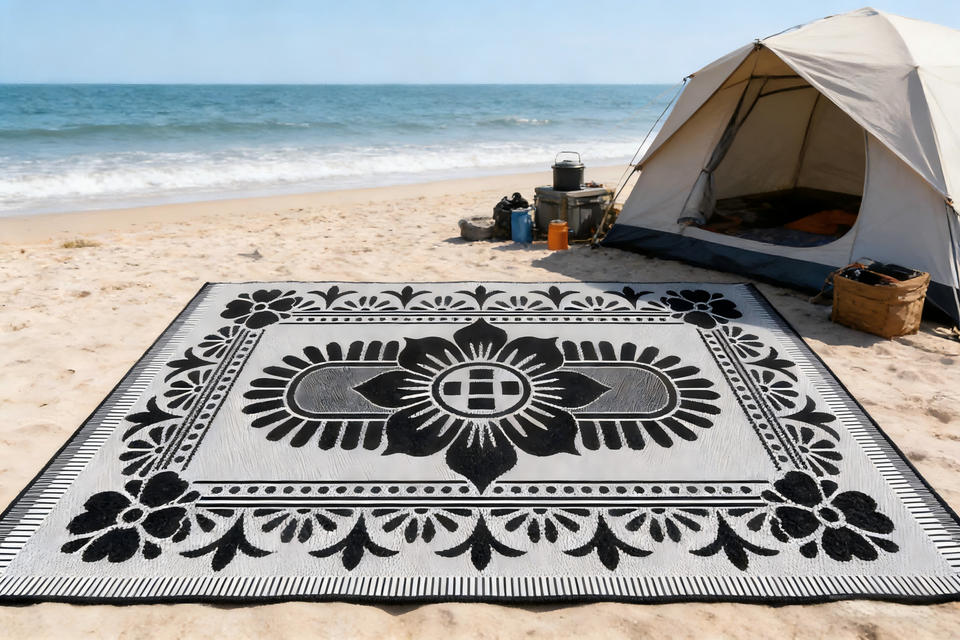 Tapis d'extérieur personnalisé facile à nettoyer en plastique PP pour pique-nique et camping