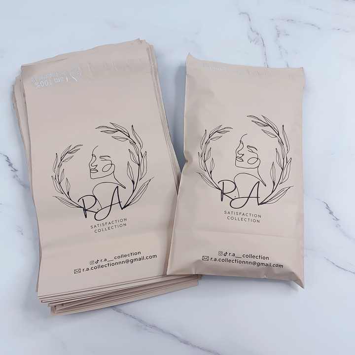 Sacs d'expédition personnalisés en polyéthylène couleur pêche avec impression d'art ligné noir - Sacs d'expédition étanches pour boutiques et e-commerce
