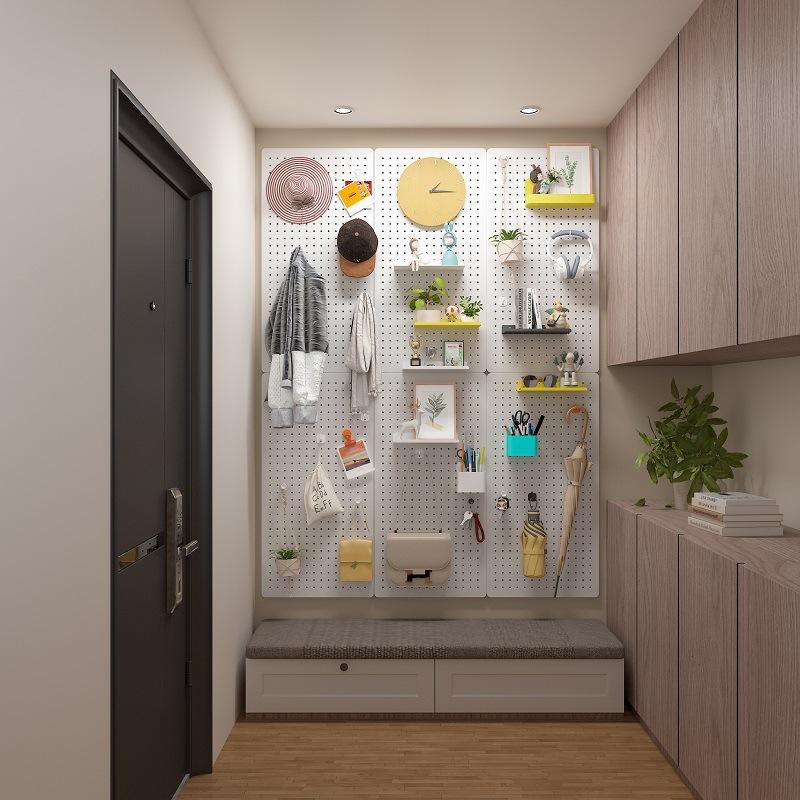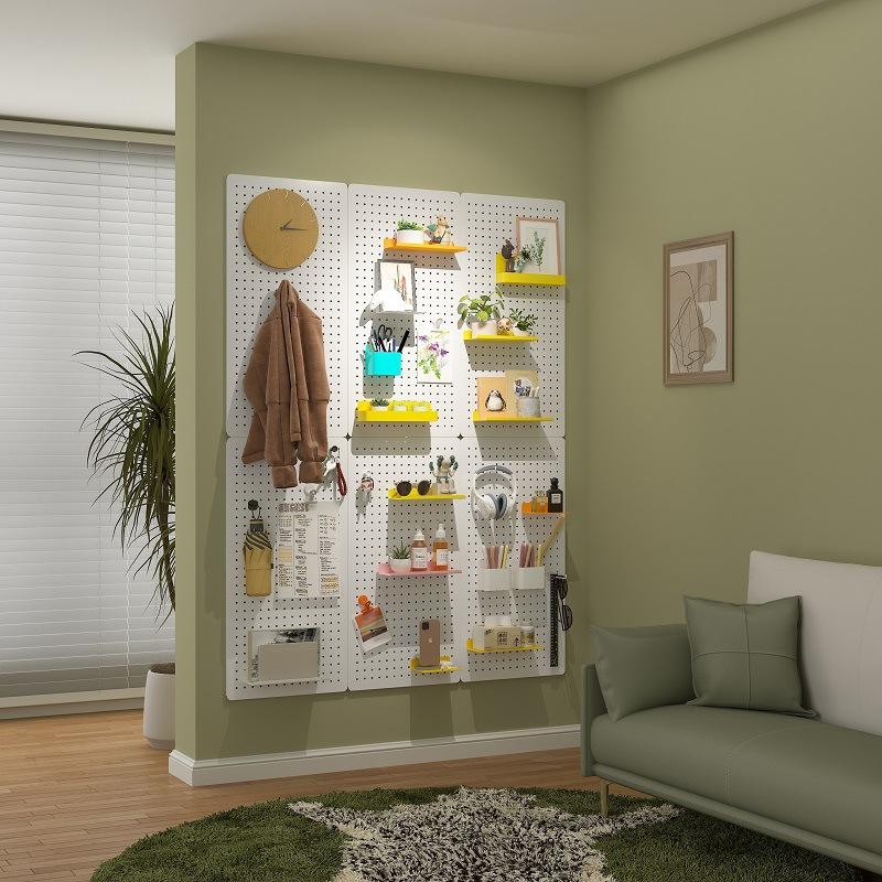 Étagère murale perforée personnalisée, rectangulaire, blanche, noire, jaune, bleue, verte, rose, revêtement poudré, sans perçage, organisateur de bureau