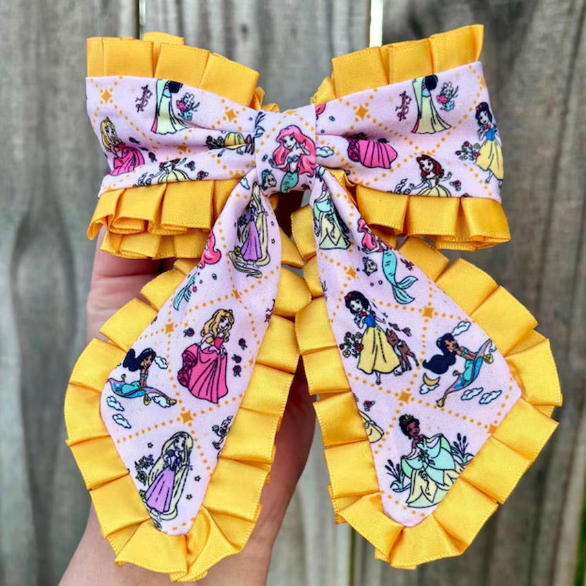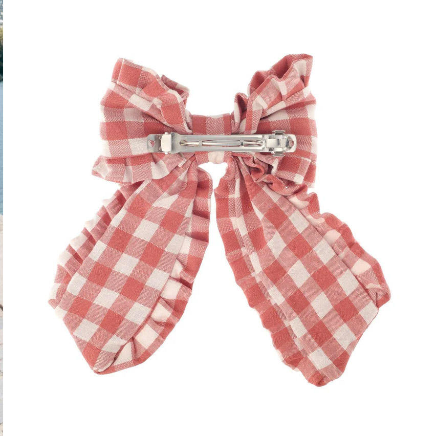 Accessoires pour cheveux personnalisables à carreaux avec bord festonné, longue queue et grand nœud pour fille/femme