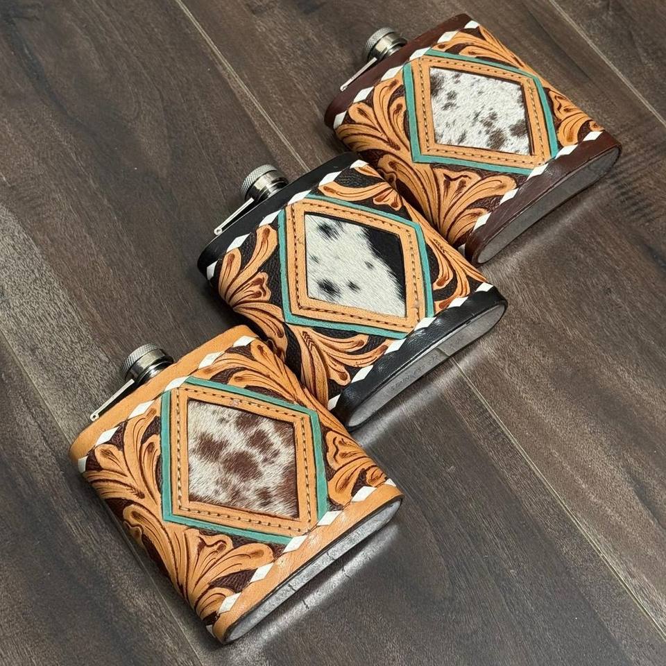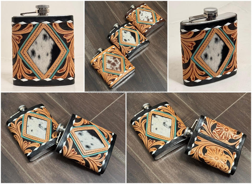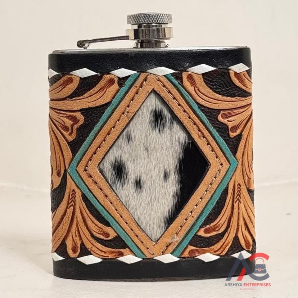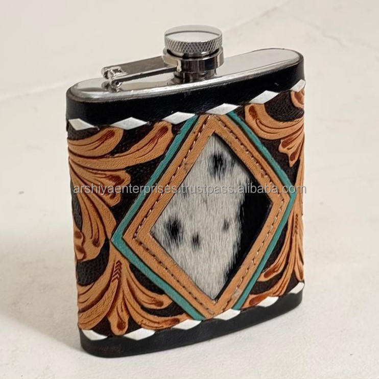 Nom du produit:Flasque à alcool en cuir de vachette travaillé à la main avec acier inoxydable