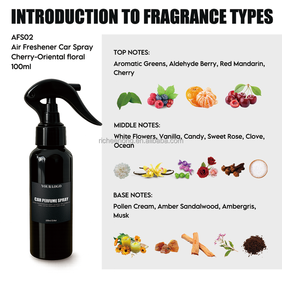 Vaporisateur de parfum automatique personnalisé 100 ml pour désodorisants de voiture bombe au parfum de cerise perdue avec assurance qualité