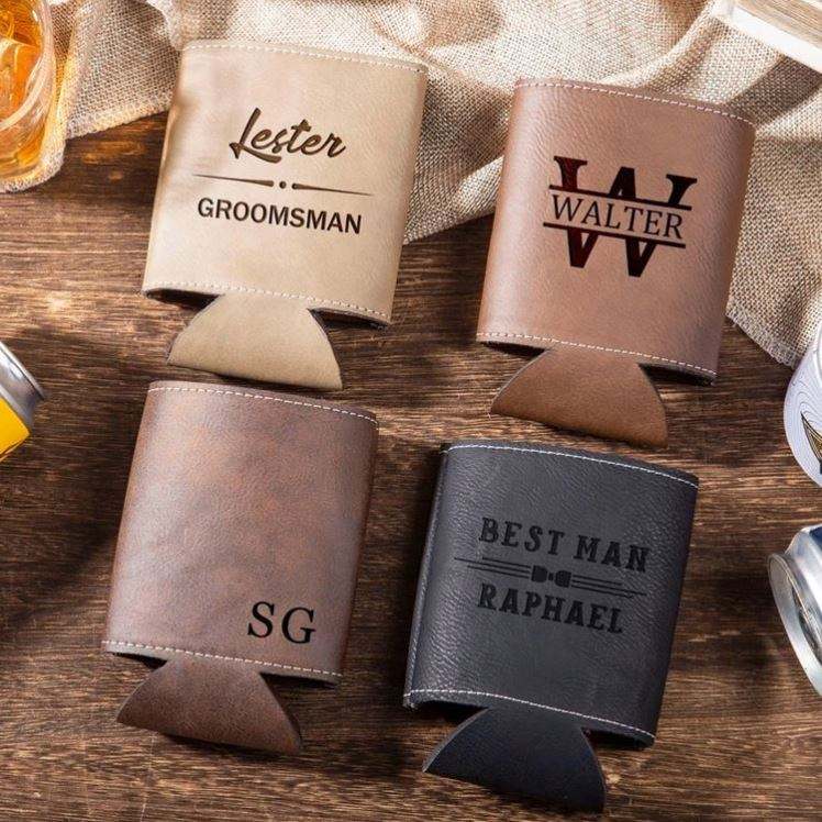 Refroidisseur de canettes personnalisé avec monogramme - Manchon et support pour canettes de bière - Cadeau unique pour lui