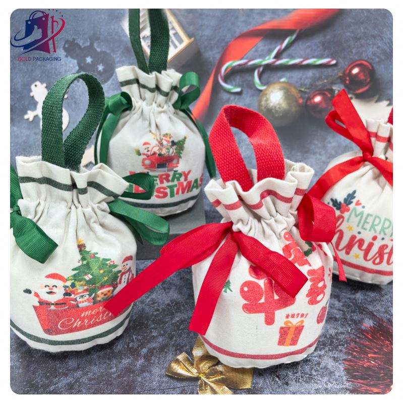 Petite pochette de Noël en toile de coton écologique recyclable avec logo personnalisé