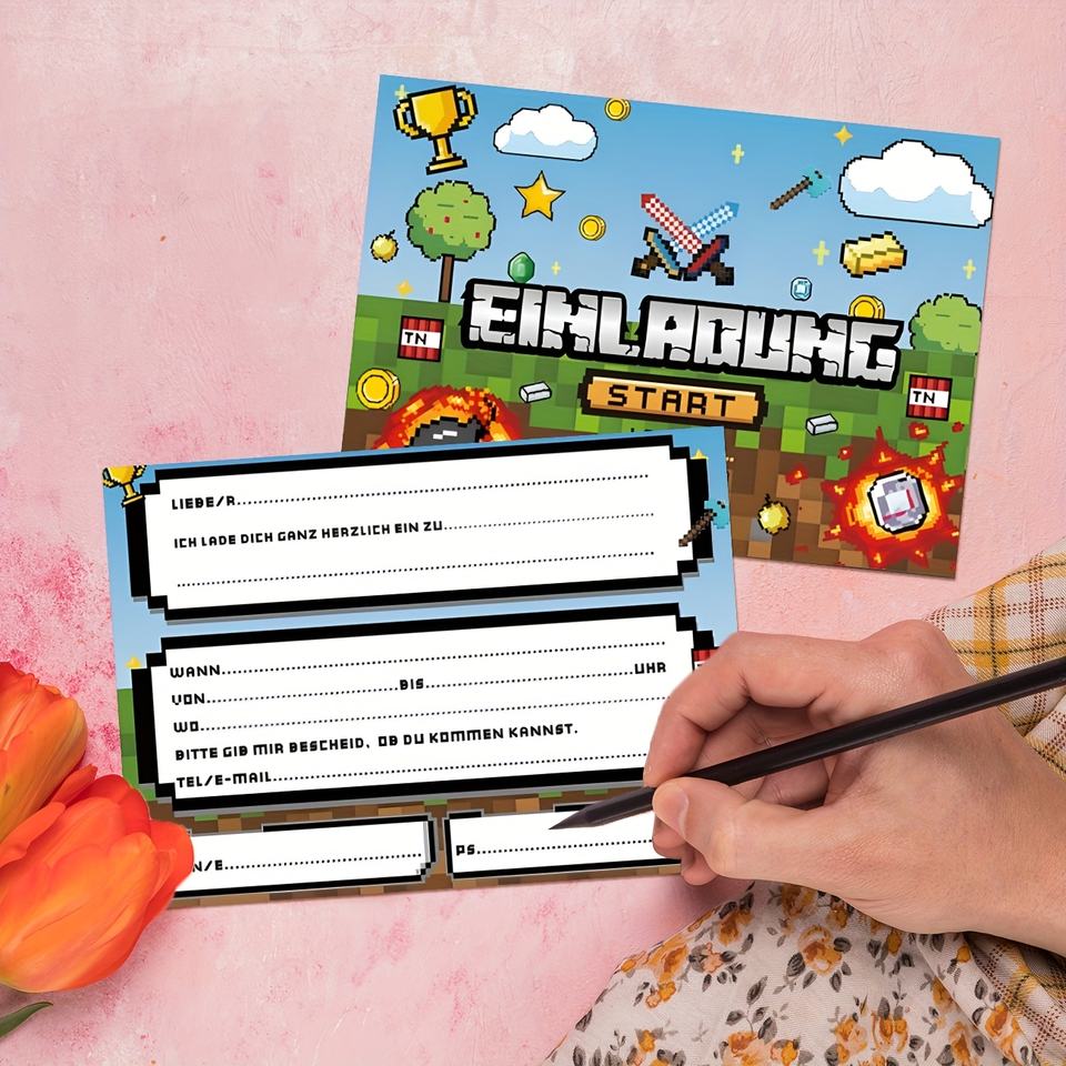 Cartes d'invitation personnalisées pour fêtes, ensemble de cartes de vœux pour anniversaires d'enfants, fournitures de fête sur le thème des jeux pour garçons et filles